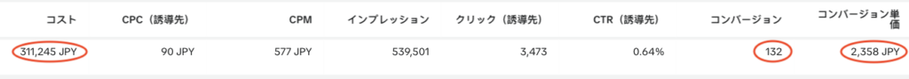 広告費311,245円に対して、着実に成果へつながる配信結果となりました。