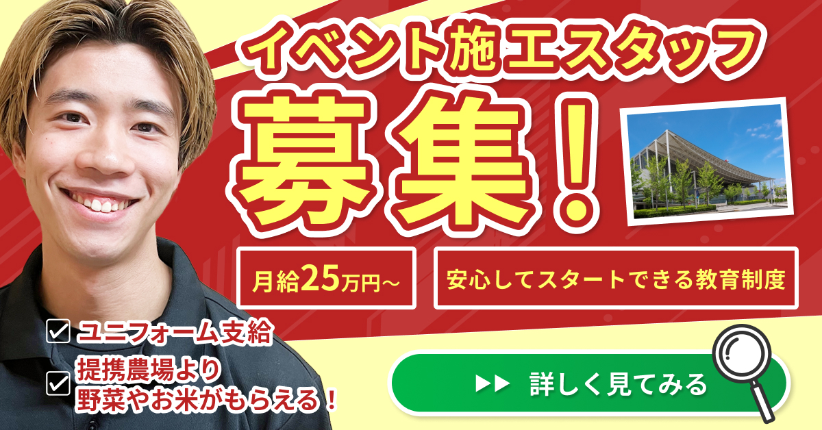 本来求めているのは、イベント現場での施工業務を担いながら、安全面や段取りにも配慮し、現場を円滑に支えられる人材です。