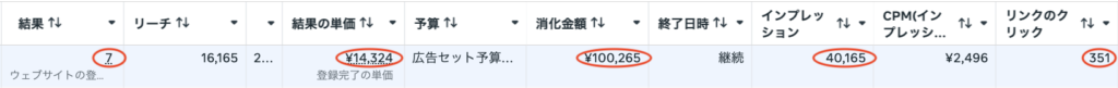また、1ヶ月で7件のお問い合わせを獲得しており、CPAは14,324円でした。認知の拡大だけでなく、実際のアクションにもつながった配信結果となりました。